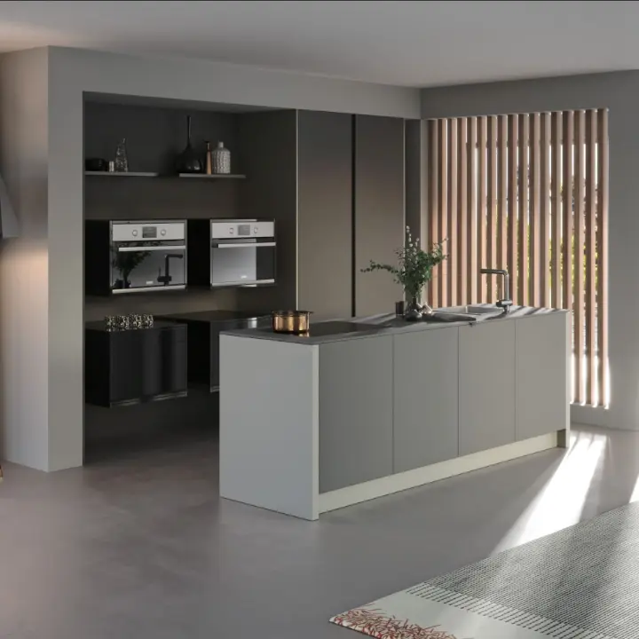 Grifflose Küche in Mattgrau – Ruhe und Eleganz