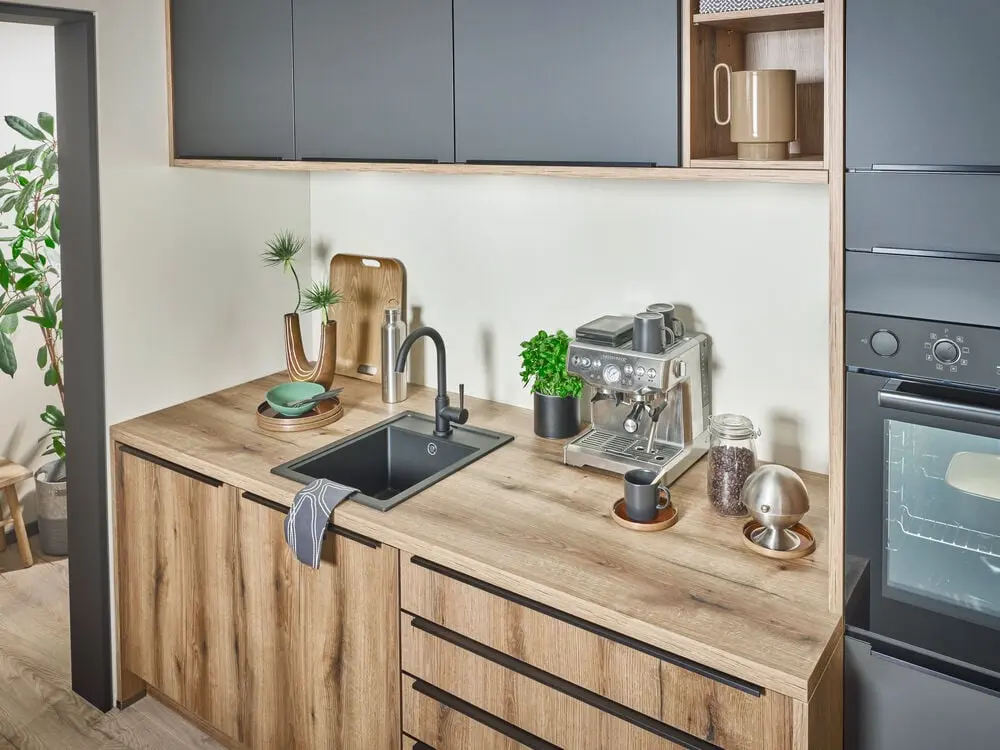 Wenige, gut kombinierbare Dekore, eine klare Linienführung, griff- oder griffreduzierte Optik. So bleibt der Raum auch nach Mieterwechseln und intensiver Nutzung gepflegt.
